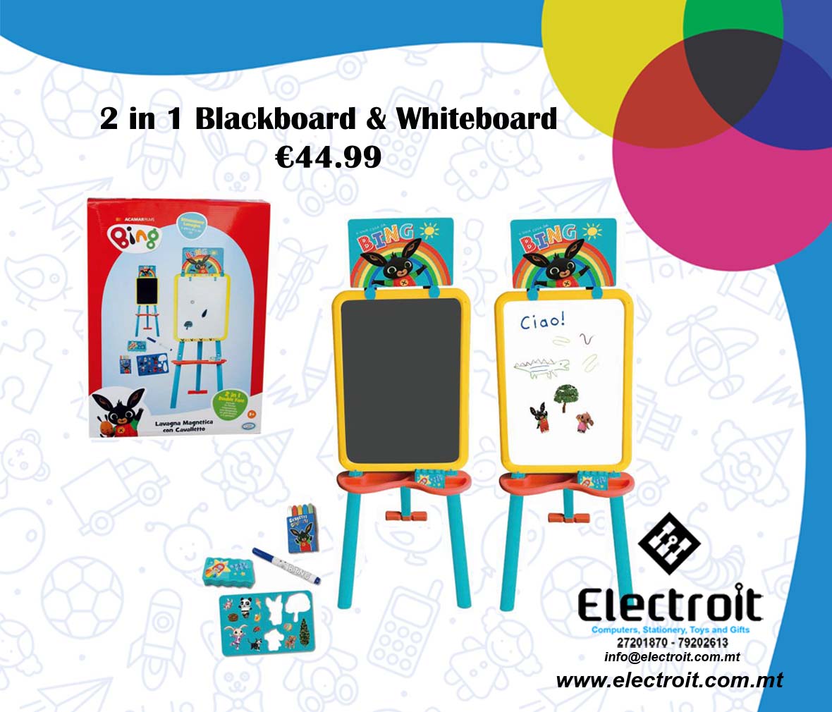 One white magnetic side for writing with marker, one black side for writing with chalk