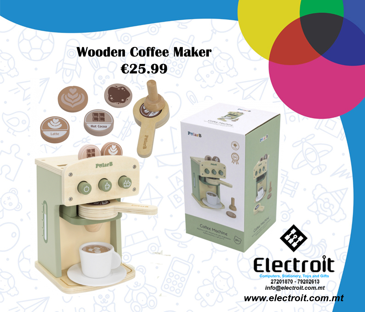 Recreating situations familiar to a child from everyday observations positively influences their overall development, supporting social skills, playing with peers, and problem-solving. Contact with wooden toys brings a lot of joy and develops a child’s sense of aesthetics. The set includes: – Espresso machine – 3 coffee capsules (espresso, latte, cappuccino) – Cup – Saucer – 2 double-sided coffee slices – Coffee tamper