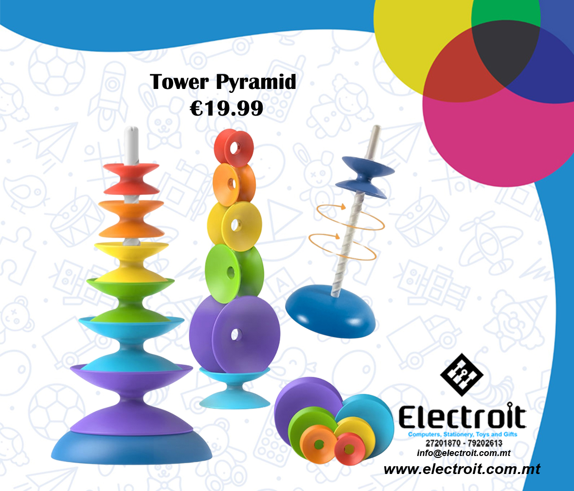 Each of the 7 spools differs in size and color, encouraging the little one to explore, compare and stack according to their own ideas. The toy is great for exercising manual and motor skills — the child improves grasp, hand–eye coordination and recognition of shapes and colors.