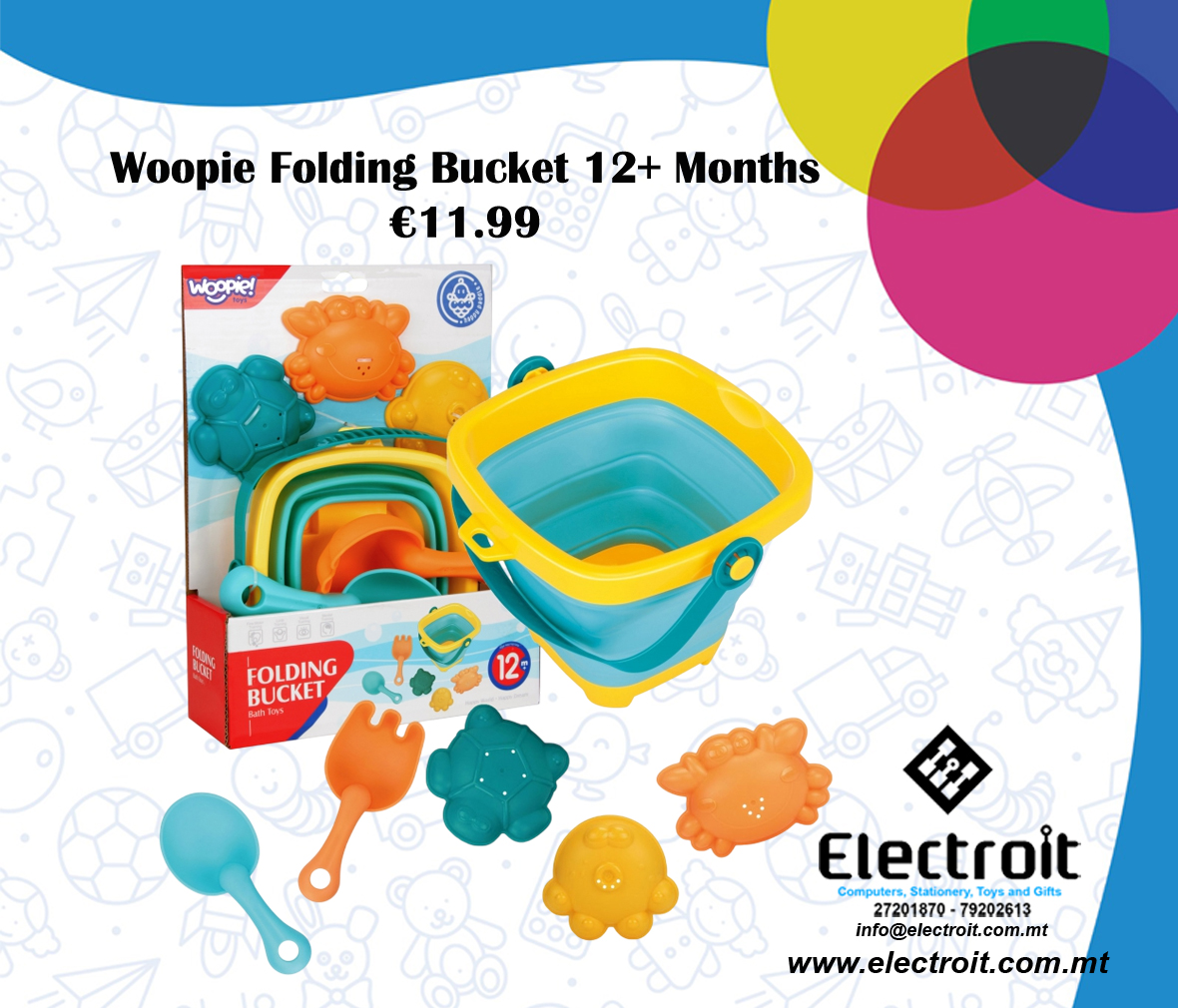 A fantastic bucket for the sandbox, beach, or garden, allowing children to enjoy time outdoors. Thanks to its foldable design, the bucket takes up minimal space, making it easy to transport and store. Three sand molds are included. The set fits in a child’s backpack, stroller, or beach bag. The top, bottom, and handle of the bucket are plastic, while the walls are made of thick, accordion-folding silicone. The rake and shovel are also plastic.